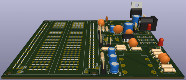 The power switch has a three-pin, 2.54mm footprint and there is always the option for mounting some of the connectors, LEDs, and switches directly to a case and connected back to the PCB using wires. I anticipated the LEDs would probably be bent over anyway to appear from the bottom of any box, next to the power socket and on/off switch.
