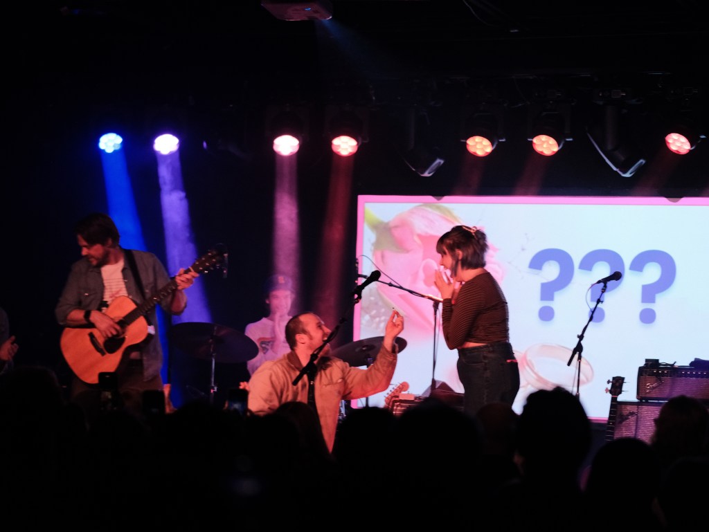 Of course the theme of the night was love, what with it being Valentine's Day. Another memorable moment included one "Tanner," who was beckoned on stage by Heidecker. Tanner then brought out a woman who he would soon get down on one knee in front of and pop *the* question to mass applause. Even though there was no audible "yes," they hugged and laughed and it was all lovey dovey, and eventually she did lean into the mic with a confirmed "yes." Once off the stage, Heidecker had to break the cuteness overload. "I don't know who the fuck those people are."